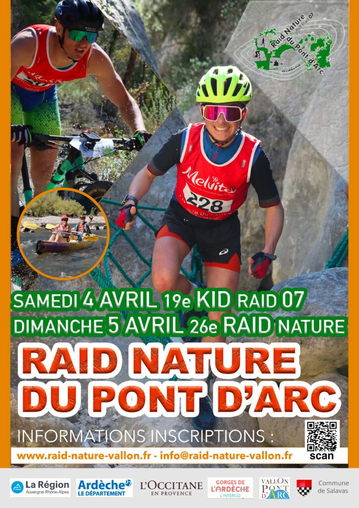 C’est toujours l’évènement qui marque le début de saison dans le sud Ardèche, et il a lieu, comme chaque année, le week-end de Pâques. Il s’agit d’un raid multisport (enchaînement d’épreuves : trail, canoë et VTT). Une épreuve « famille » est proposée le samedi, à faire avec les enfants, puis, pour les plus grands, un raid découverte et aventure le dimanche. C’est le genre d’épreuve ouverte et accessible au plus grand nombre : n’hésitez pas à vous motiver en famille ou entre amis pour y participer. L’ambiance est très bon enfant, malgré l’effort !