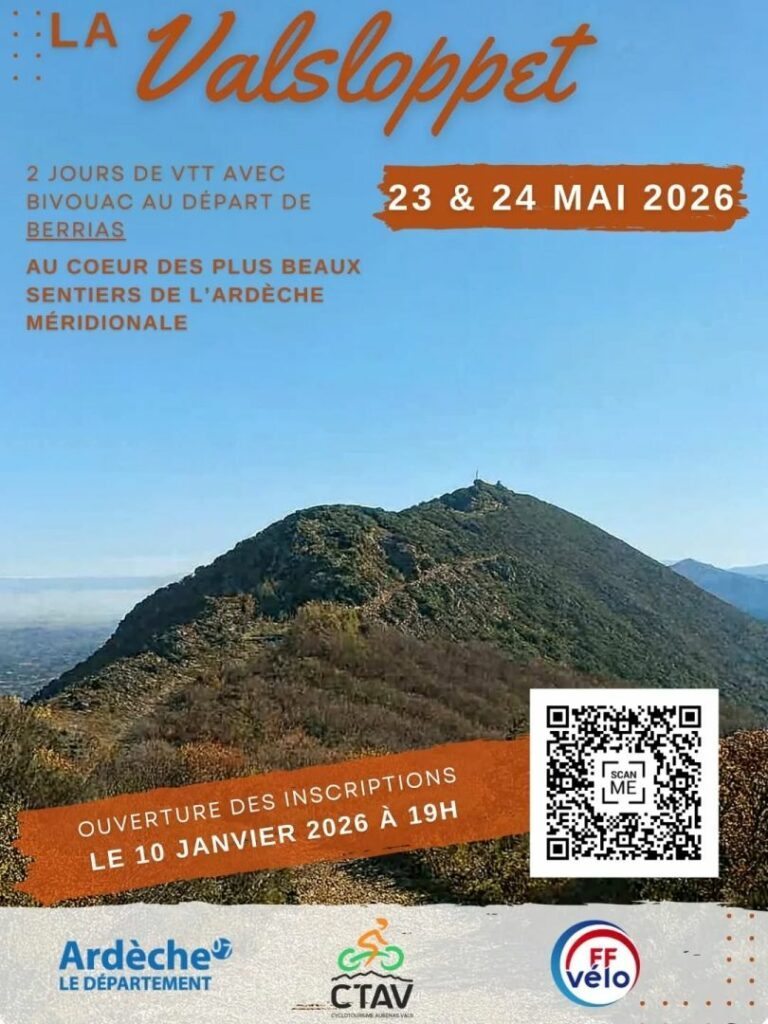 La randonnée VTT sur deux jours, incontournable du sud Ardèche, se déroulera cette année les 23 et 24 mai. C’est désormais une véritable institution dans le paysage local. Tout vététiste se doit d’avoir participé au moins une fois à cet évènement ! Et comme nous le disait Manu, le départ se fera cette année depuis Berrias. Les inscriptions sont ouvertes : ne les manquez pas, certaines années les places partent très vite ! Pour cette édition, 400 places sont disponibles, mais 300 sont déjà parties.